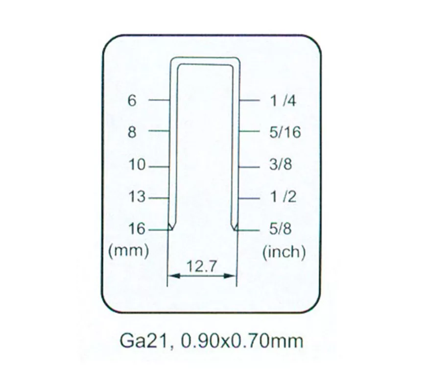 8016 Series Air Staplers inkluderar främst 8016B Air Fine Crown Stapler, 8016C Air Fine Crown Stapler, 8016LN (Long Nose) Air Fine Crown Stapler, som alla är klassiska tunga luftspikvapen. Lämplig nagel GA21, 0,90x0,70 mm, axelavstånd 12,7 mm, nagelhöjd kan vara 6 mm, 8 mm, 10 mm, 13 mm, 16mm (1/4, 5/16, 3/8, 1/2, 5/8 tum).