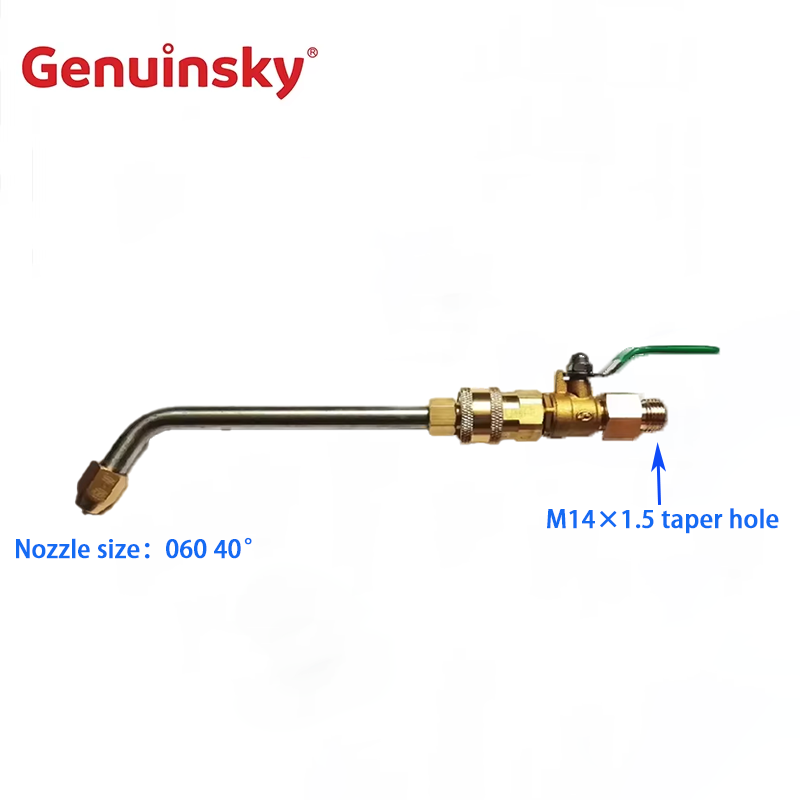 Genuinsky -märket böjd munstycke med 1/4 tum ventil är dedikerad till ren tvättluftstillstånd, produkten i sig böjd 60 grader, outhole dia.060 40 grader.