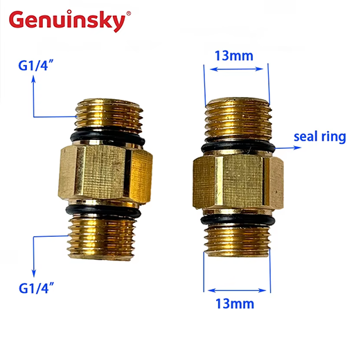 Produktmaterialet är mässing, och mässingsmaterialet har korrosionsbeständighet, vilket kan säkerställa stabiliteten i användningsprocessen, så att det också kan förlänga användningstiden och minska kostnaden. Tätningsringstrukturen i båda ändarna kan uppnå god tätningseffekt i scenarier med högt tryck och kommer inte att läcka lätt. Den allmänna användningsmetoden är: mässingsnippel med båda sidotrådarna G1/4 är skruvade in i gränssnittet för slanggränssnittet och spraypistolen genom G1/4-tums externa trådar i båda ändarna för att ansluta högtryckslangen och högtryckssprutpistolen. Det kan ses i många användarscenarier, till exempel hemanvändningsscenarier: Biltvättarbete. Vid rengöring av fordonet kan anslutning av vattenröret och spraypistolen stabilt överföra vattenflödet. Tätningseffekten av tätningsringstrukturen kan undvika vattenläckage och spela en hjälproll i rengöringsprocessen. Inom det industriella området: Rengöring av utrustning. I industriella scenarier, för att säkerställa normal drift av utrustning, är det vanligtvis nödvändigt att regelbundet rengöra stora maskiner och utrustning och produktionslinjer för att ytterligare säkerställa produktionssäkerhet. Genom att ansluta högtrycksrengöringsmaskinen och munstycket genom denna produkt kan den tillämpas exakt på den del som ska rengöras.