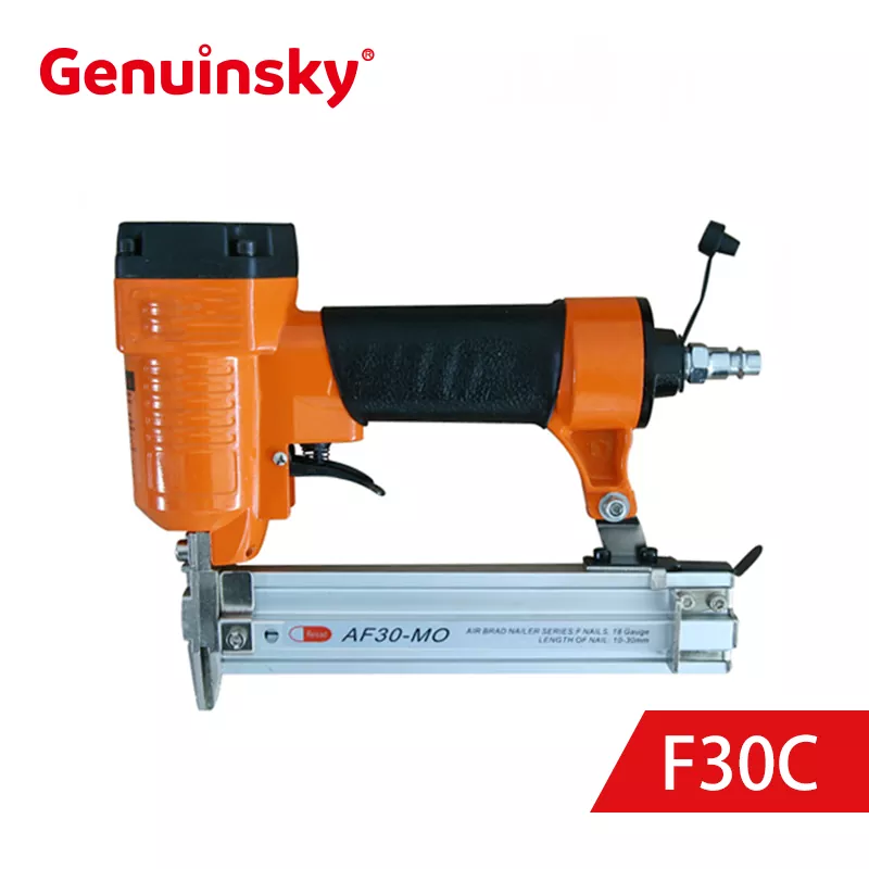 Air Brad Nailer är en av de mest använda pneumatiska raka nagelpistolerna. F30C Air Brad Nailer är en grundmodell. Båda DIY och professionell användning har den bredaste marknaden. Dess representativa produkter är F30, F32 och F50, med nagelstorlekar på GA18 1.05x1.25. Välj lämplig rak nagelpistol beroende på naglarnas olika längdkrav.
