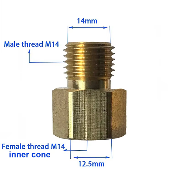 Model:M14x1.5 Female to M14 Male Taper Brass Nipple