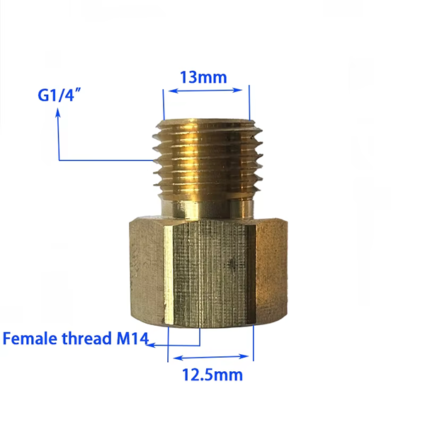 Storleken på själva produkten är strikt utformad enligt motsvarande storlek. Det finns två specifikationer att välja mellan. Den första typen av nippel, ena änden är G1/4 tum, med en diameter på 13 mm, och den andra änden är invändig gänga M14×1,5, med en diameter på 12,5 mm. Den andra typen av nippel, ena änden är hangänga M14, med en diameter på 14 mm, och den andra änden är invändig gänga M14×1,5, med en diameter på 12,5 mm, med en inre kondesign. Utformningen av den inre könen kan anpassas nära till den koniska ytan på motsvarande skarv för att åter bilda en sekundär tätning, så att tätheten och tryckmotståndet hos anslutningen kan förbättras avsevärt. M14x1,5 Hona till M14 Hane Taper Brass Nippel är ett mässingsmaterial med stark korrosions- och tryckbeständighet. Vätsketransport kräver en långvarig fuktig miljö och är benägen för kemiska reaktioner. Därför kan egenskaperna hos mässingsmaterial hålla det Det är stabilt och inte lätt att rosta och bryta, vilket påverkar hela arbetsflödet. Det förlänger också livslängden på själva produkten och minskar kostnaderna för att byta ut utrustningen.