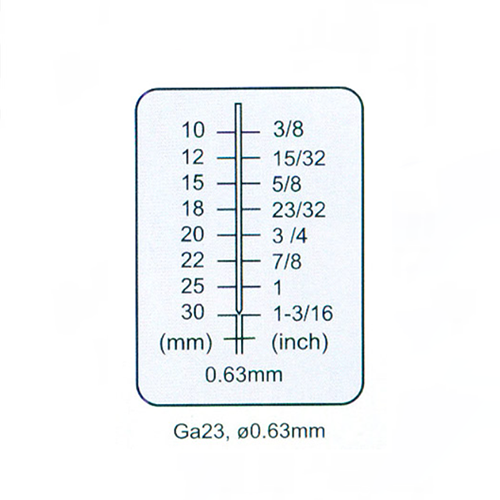 Spik- eller stiftstorleken för MP630B luftmikro-pannan är liten och tunn, storlek 12-30 mm (15/32 till 1-3/16-tum), GA23, DIA. 0,63 mm.