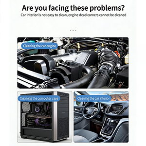 Bilens sätesavstånd, dörrförvaringsfacket eller luftkonditioneringskanalen och andra platser är tunga katastrofområden där smuts och beläggningar är gömda. Med detta dammpistolset kan du enkelt ta bort envis damm utan att skada gummirören och elektroniska komponenter i bilen. Snabbkopplingen i båda ändarna av luftstrupen är också mycket praktisk. Plug-in-designen kräver inga andra komplicerade verktyg. Den kan snabbt anslutas till den inbyggda luftpumpen eller den bärbara luftkompressorn. Dammborttagningsarbete kan utföras när som helst utan komplicerade operationer, vilket avsevärt förbättrar drifteffektiviteten.