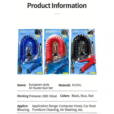 GenuinskysPneumatisk luftblåspistolsats i europeisk stilkan täcka en mängd olika användningsscenarier, oavsett om det är dagligt städarbete eller industriellt underhållsarbete, från lätt dammborttagning till måttliga dammborttagningsscenarier.