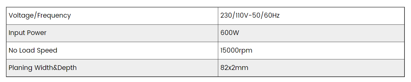 Varför 82x2mm Electric Hyvel är ett effektivt träbearbetningsverktyg kan introduceras från flera aspekter. Att döma av produktens kärnparametrar kan för det första den breda spänningen på 230/110V-50/60Hz inte bara anpassas till 220V civila strömförsörjningssystemet i Kina, utan även den utländska 110V arbetsmiljön, och frekvensskillnaden på 50/60Hz mellan olika regioner, så oavsett om det är fråga om inhemsk utrustning, kan det vara bra att använda den. uppnås, vilket minskar obalansen mellan spänning och frekvens. För det andra kan den nominella ineffekten på 600W göra utrustningen kontinuerligt stabil uteffekt, och det finns också tillräcklig effektreserv för stabil hyvling inför relativt hårda och tjocka material, vilket kan undvika instabilitet i arbetet på grund av överbelastning, så att effektiviteten och kvaliteten på arbetet kan vara online samtidigt. För det tredje kan tomgångshastigheten på 15 000 r/min göra att hyveln har en hög skärlinjehastighet, vilket snabbt kan planera ett jämnt snitt vid bearbetning av trä. Samtidigt kan hastigheten för bearbetning av material vara mycket snabb, så det är mycket viktigt vid bearbetning av mycket arbete, vilket avsevärt förbättrar arbetseffektiviteten. För det fjärde kan hyvlingsbredden på 82 mm minska antalet tur och retur vid bearbetning av relativt breda träytor, vilket sparar tid. Hyvlingsdjupet på 2 mm kan realisera tvåvägsbehoven för grovbearbetning och finbearbetning, vilket inte bara kan utföra finputsning, utan också ta bort överflödigt trä under bearbetningen. Det kan ses att denna 82x2 mm elektriska hyvel har en mängd olika kärnfördelar, så den har viktiga ansvarsområden inom träbearbetning.
