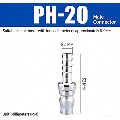 1. PH-20. Den är lämplig för luftstrupe med en innerdiameter på ca 8-9 mm. Diametern på anslutningsrörets ände är 8,5 mm och den totala längden är 52 mm.