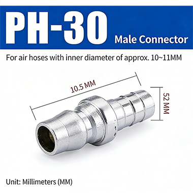 2. PH-30. Den är lämplig för luftstrupen med en innerdiameter på ca 10-11 mm, med en diameter på 10,5 mm i änden av kopplingen och en total längd på 52 mm.