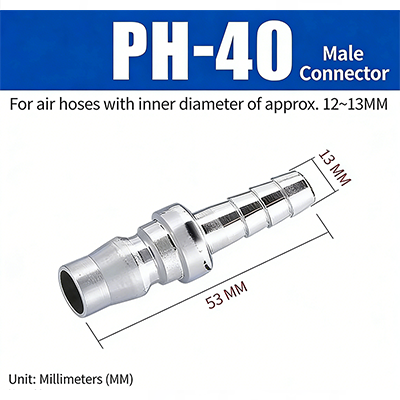 3. PH-40. Den är lämplig för luftstrupe med en innerdiameter på ca 12-13 mm. Diametern på skarvrörsänden är 13 mm, och den totala längden är 53 mm.