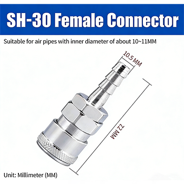 PH–SH-serien C-typ snabbkopplingar med JIS PT-gänga tillverkade av Genuinsky har en snabbkopplingsstruktur av C-typ. Han- och honhuvudena kan matchas efter behag och ytbeläggningen och kopparkärnan gör produkten mer hållbar. Som en professionell leverantör av pneumatiska verktygstillbehör i Kina är Genuinskys produkter standardiserad produktion. Denna produktserie har fullständiga specifikationer och kan exakt matcha olika pneumatiska rörledningar.