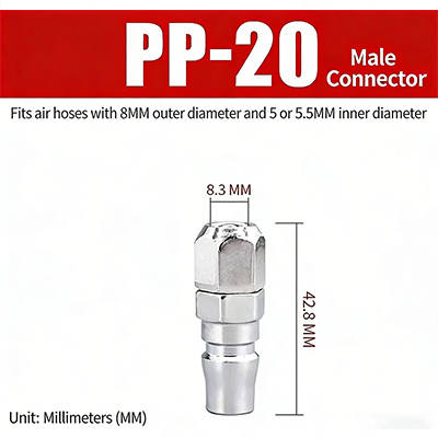 1. PP-20. Den är lämplig för luftstrupe med en ytterdiameter på 8 mm, en innerdiameter på 5 mm eller 5,5 mm, med en toppbredd på 8,3 mm och en total längd på 42,8 mm.