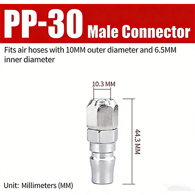 Genuinskys PP–SP-serie C-typ snabbkopplingar med JIS PT-gänga har en snabbkopplingsstruktur i C-stil, vilket möjliggör fri parning av han- och honkontakter. Den elektropläterade ytan och kopparventilkärnan förbättrar produktens hållbarhet.