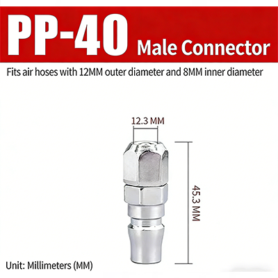 3. PP-40. Den är lämplig för luftstrupen med en ytterdiameter på 12 mm och en innerdiameter på 8 mm, med en toppbredd på 12,3 mm och en total längd på 45,3 mm.