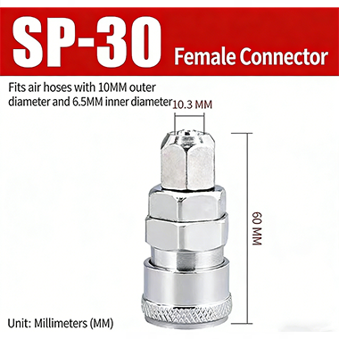 2. SP-30. Den är lämplig för luftstrupe med en ytterdiameter på 10 mm och en innerdiameter på 6,5 mm, med en toppbredd på 10,3 mm och en total längd på 60 mm.