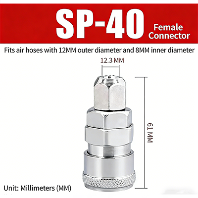 3. SP-40. Den är lämplig för luftstrupe med en ytterdiameter på 12 mm och en innerdiameter på 8 mm, med en toppbredd på 12,3 mm och en total längd på 61 mm.