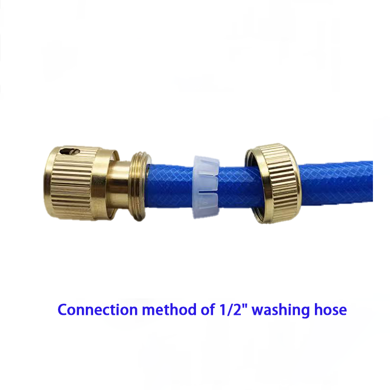 Detta är en uppsättning anslutande delar för vatteninloppsänden av högtrycksbrickan. Det specifika steget är att ansluta vatteninloppsslangen med 1/2 tum inre diameter som uppfyller kraven med vatteninloppet på högtrycksbrickan genom lågtryckskontakten, 20bar pluggtråd 3/4, som kan användas vid trädgårdsrengöring. Tvätt och andra rengöringsscener. Denna tryckbricka inloppskontakt har ett filternät inuti. Funktionen för filternätet inuti är att avlyssna föroreningar, partiklar, silt och annan smuts i delarna i vätskeöverföring. Färgning, dessa föroreningar kommer att orsaka blockering och slitage av kärnkomponenter. Det är främst lämpligt för trädgårdsrengöringsscenarier. Marken som cementgolv, skifferväg och träplattform mot korrosion är ett område som måste rengöras ofta, så att vatteninloppskontakten kan undvika att mobilmaskinen får gränssnittet att falla av eller läcka vatten. Gränssnittet har en antislid och snap-design, vilket kan förhindra att slangen lossas. Samtidigt kan vissa trädgårdsredskap, som blomstativ, blomkrukor etc. också rengöras med den flexibla tvättmaskinen.
