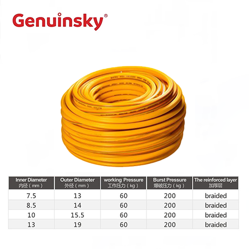 Sprutslangens sprängtryck som produceras av vårt företag är 200 bar och arbetstrycket 60bar. Det finns fyra specifikationer.