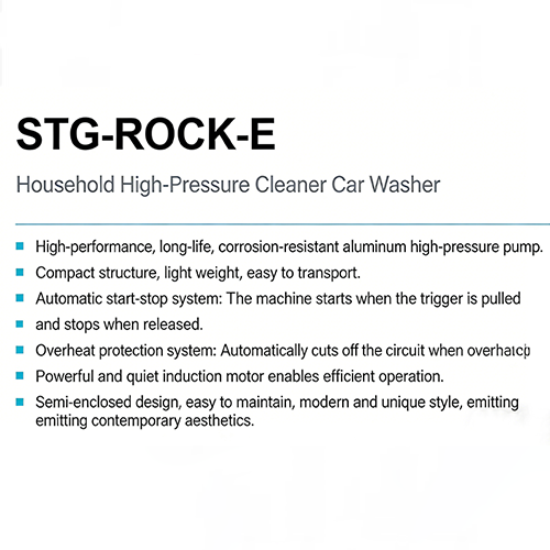 Genuinskys STG-ROCK-E bärbara högtryckstvätt är ett bärbart, hållbart och säkert rengöringsverktyg. Det kan vara till stor hjälp i dagliga hemstädningsscener, bilstädscener och utomhusscener.